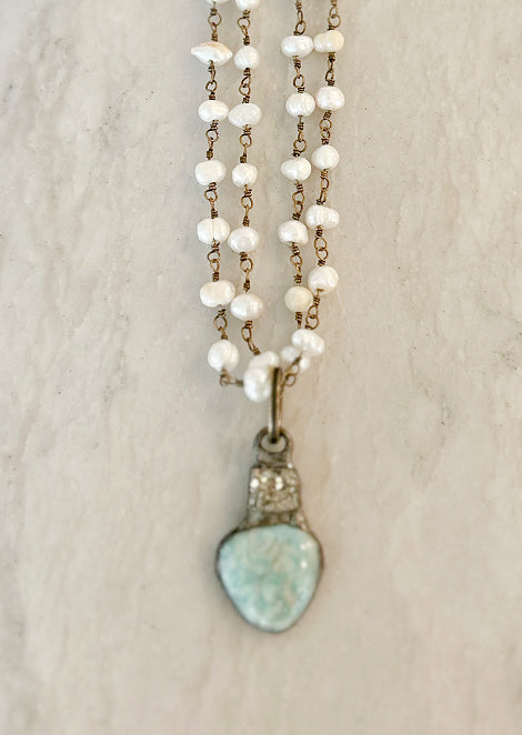 Turquoise stone heart and Pearls
